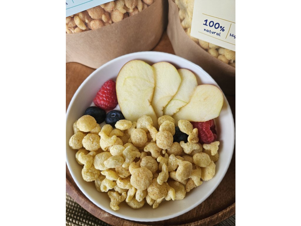 Snídaně Jablko, Datle a Skořice – výživný a přirozeně sladký start do nového dne. Vyrobená z kombinace kukuřičné, rýžové, amarantové a ovesné mouky s přídavkem lyofilizovaného jablka, datlového prášku a voňavé skořice. Bez přidaného cukru a umělých přísad – jen čistá chuť přírody.